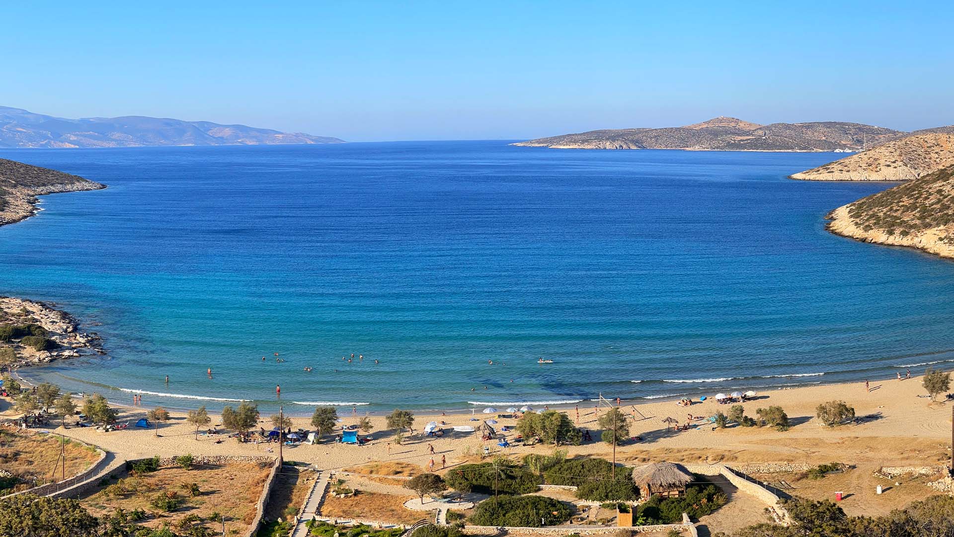 The largest and most famous beach on the island, with exceptionally clear waters and wide sandy beaches.