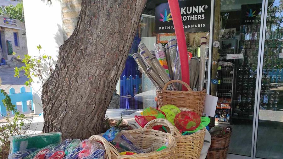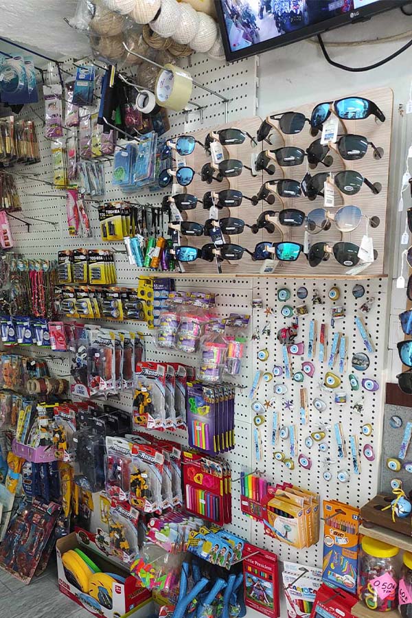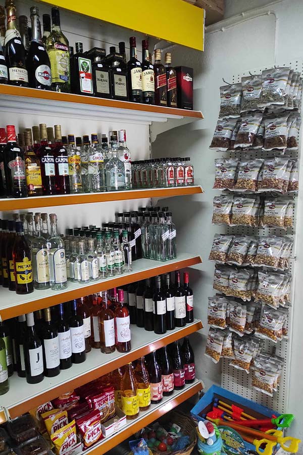 You will also find tourist items, handmade souvenirs, tabacco and a variety of foods and alcohol!